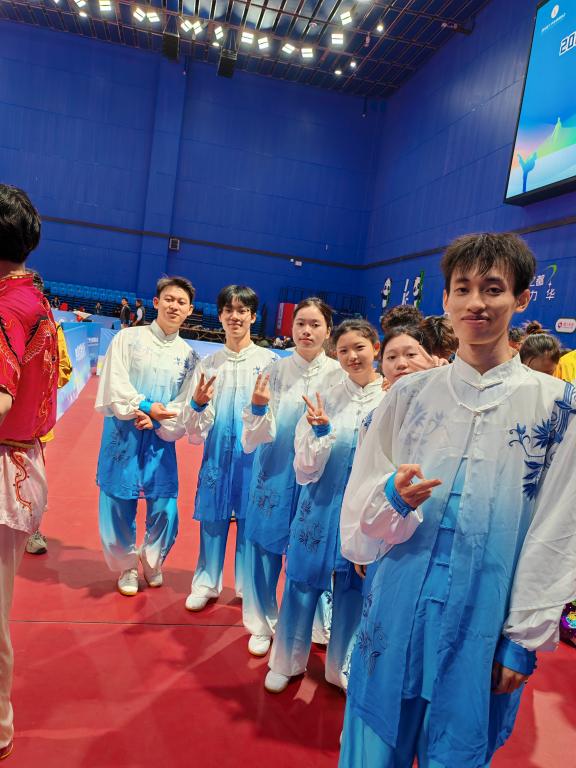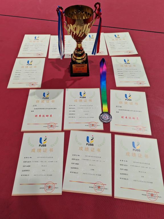 本次比赛我校集体项目参赛运动员6名,他们是黄芳群、陈世楦、杨薪润、邓锦源、黄雪怡、彭春;个人单项为:生物与化学工程学院22级园艺专业黄芳群同学在男子校园组竞赛42式太极剑中获得第二;24级生物工程专业陈世楦同学在女子校园组42式太极剑中获得第五、22级园艺专业黄芳群同学在男子校园组竞赛42式太极拳获得第五;24级环境工程专业杨薪润同学在女子校园组42式太极剑中获得第六、24级园艺专业邓锦源同学在男子校园组竞赛42式太极拳获得第六;24级化工安全工程专业文智鑫同学在男子校园组42式太极剑中获得第七、钒钛学院23级采矿工程专业彭春同学在男子校园组竞赛42式太极拳中获得第七、24级环境工程专业兰湘同学在女子校园组42式太极剑中获得第七;钒钛学院23级采矿工程专业彭春同学在男子校园组竞赛42式太极剑中获得第八、24级环境工程专业杨薪润同学在女子校园组42式太极拳中获得第八。